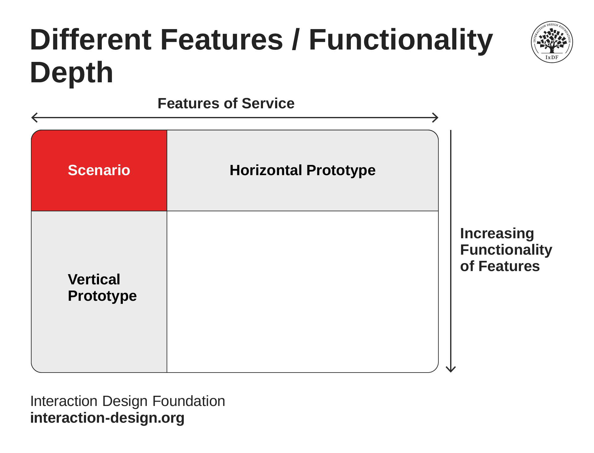 Vertical prototypes focus on deep interactivity within a few key features, which allow for detailed exploration of specific parts of the product. This type of prototype is ideal for testing and refining complex interactions in critical areas of the design.